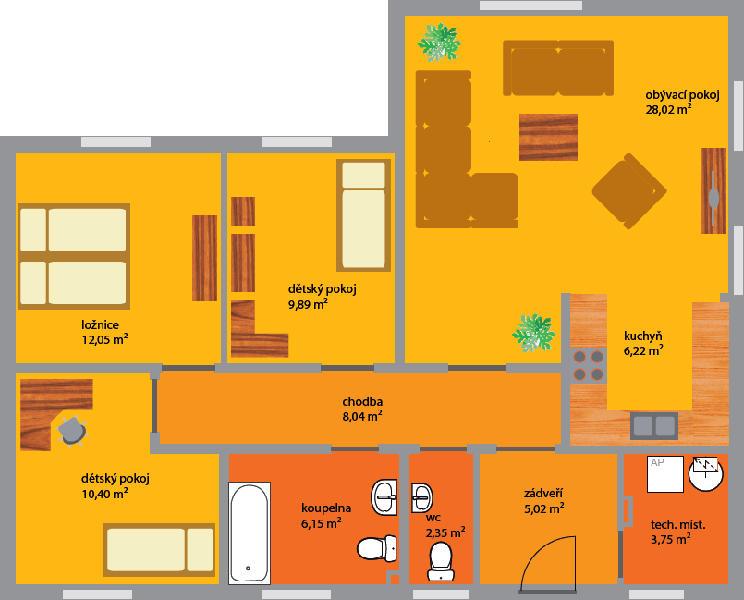 Zastavaná plocha: 193.75 m2Užitková plocha: 124.98 m2