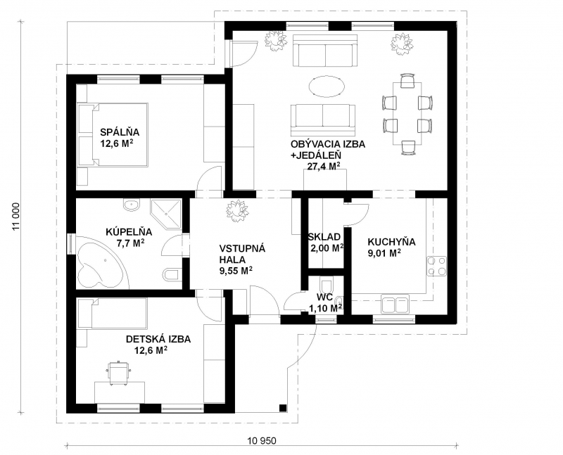 Pôdorys domu: ŠtvorecŠírka: 11.00 m
