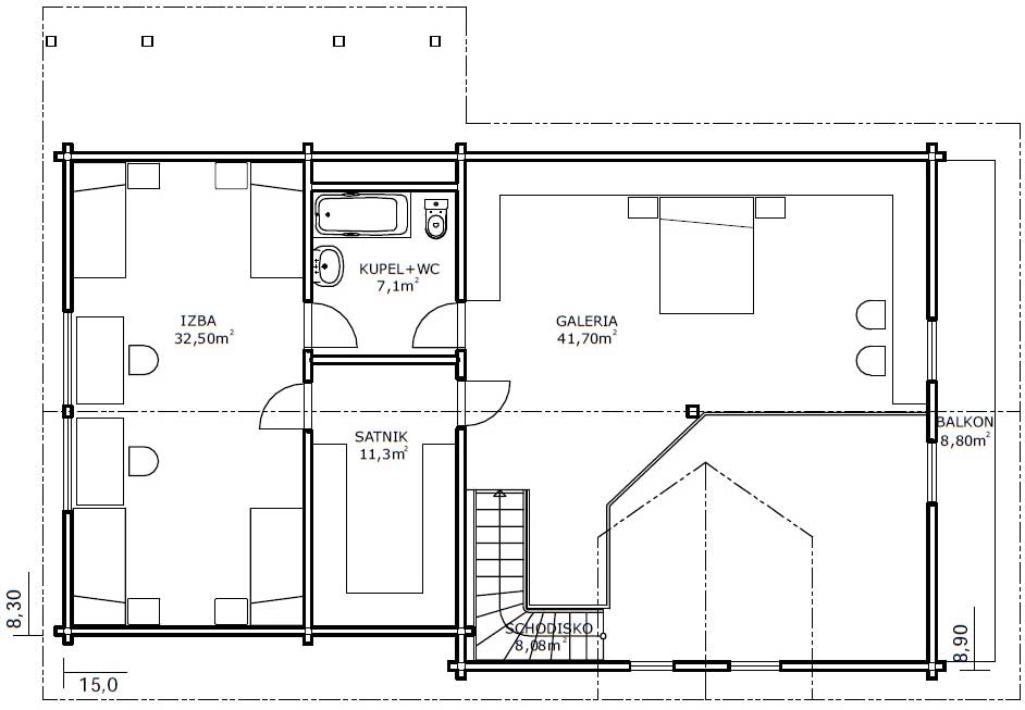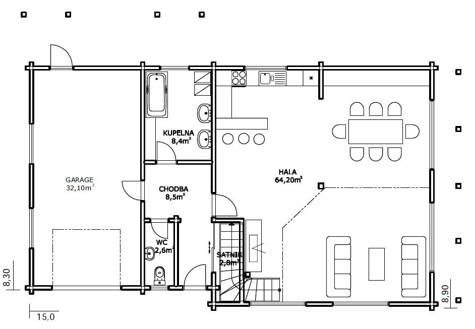 Pôdorys domu: ObdĺžnikŠírka: 15.00 m