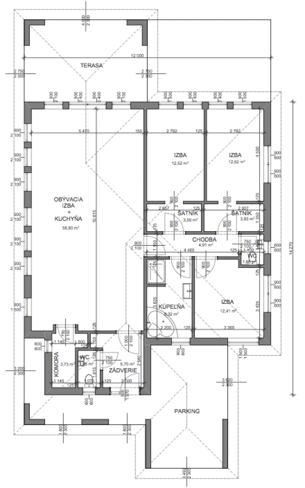 Rodinný dom Luna je jednopodlažný rodinný dom s garážou pre väčšie rodinky, ktoré majú radi priestrannosť a komfort. Dispozičné riešenie domu je dôkladne premyslené. Nočná časť domu je oddelená od dennej časti.