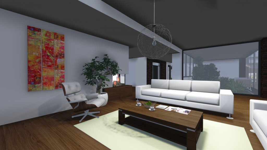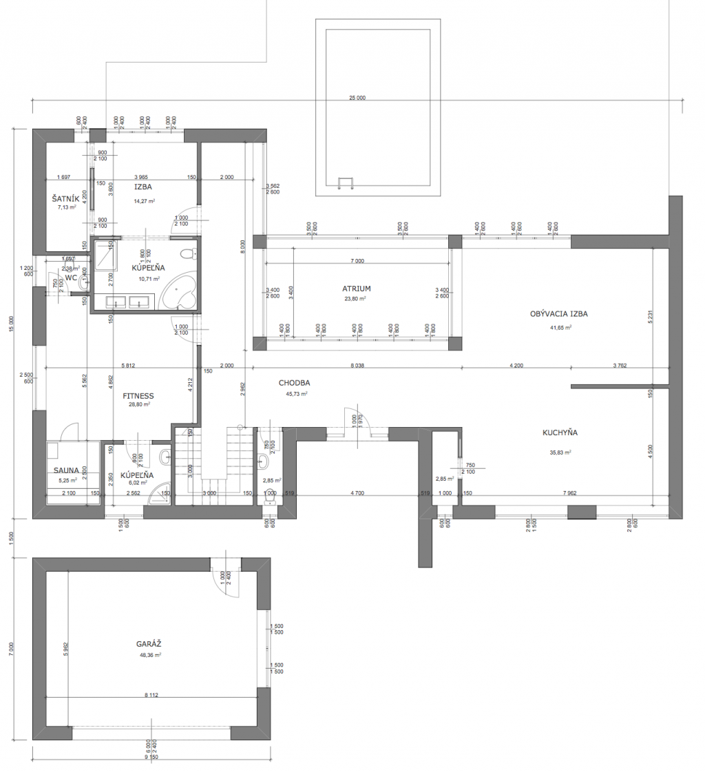 Dominantou celého domu je presklené átrium, ktoré siaha cez dva podlažia.