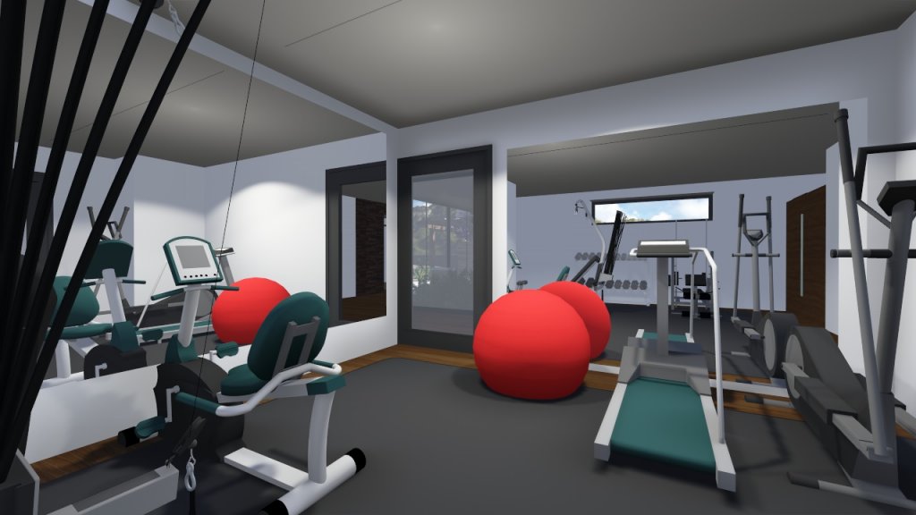 Dispozičné riešenie domu je kvalitne premyslené. Na prvom nadzemnom podlaží sa nachádza priestranná obývacia izba, kuchyňa s jedálenskou časťou, posilňovňa so saunou a samostatnou kúpeľňou a hosťovská izba so šatníkom a samostatnou kúpeľňou.