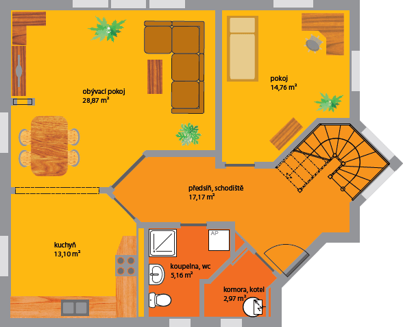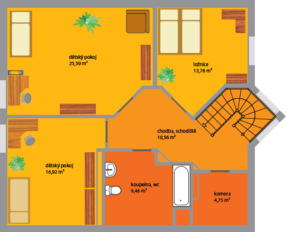Zastavaná plocha: 99.23 m2Užitková plocha: 164.84 m2