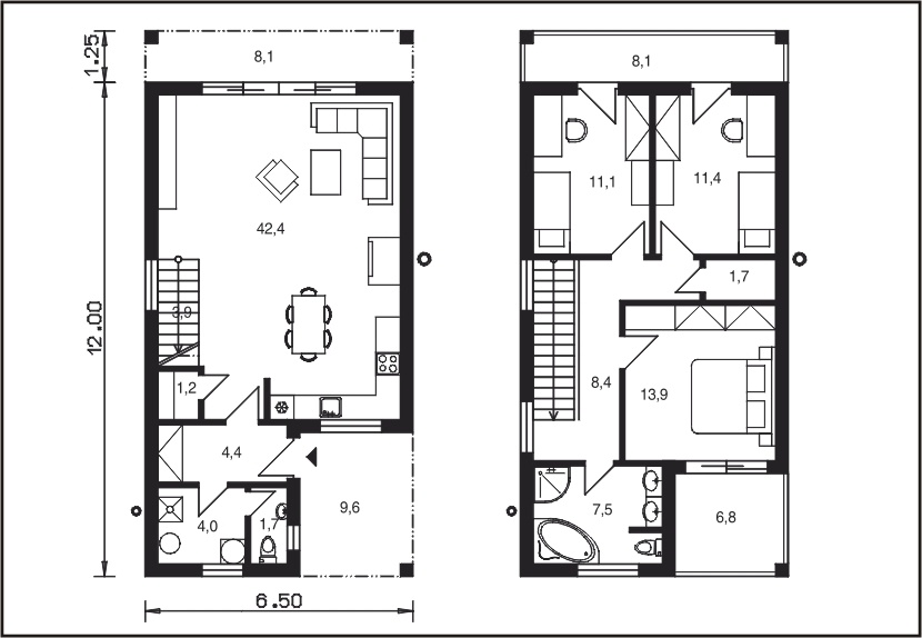 Zastavaná plocha: 86.10 m2Užitková plocha: 111.60 m2