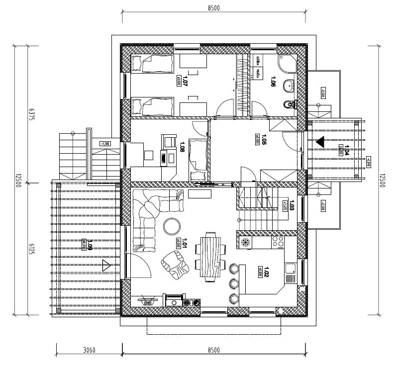 Pôdorys domu: ObdĺžnikŠírka: 8.50 m